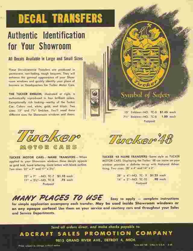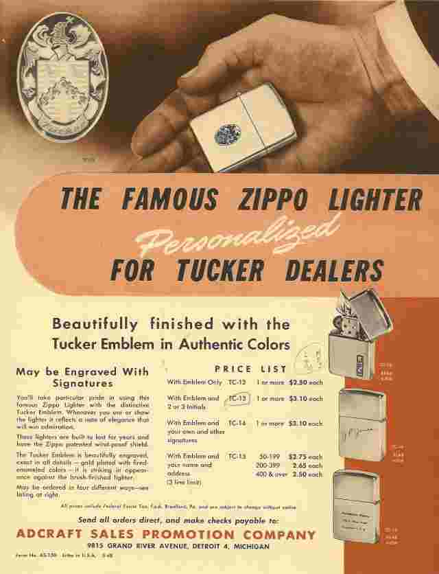 Click HERE to return to the main page of this amazing Tucker Memorabilia Website