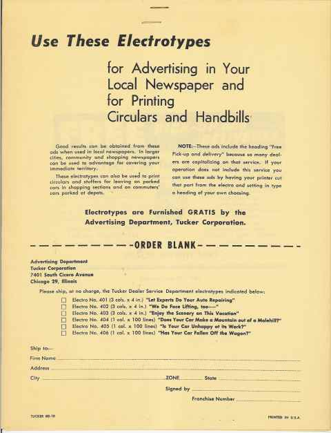 Click HERE to return to the main page of this amazing Tucker Memorabilia Website